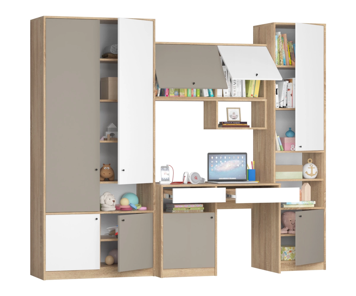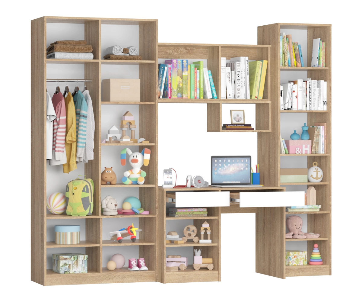 Функциональная детская "Каспер" выполнена в тёплой,пастельной гамме. В комплекте шкаф для одежды, рабочий стол с тумбой, навесная полка, пенал для книг и других нужных мелочей в детской. Изготавливаем мебель только из прочного и безопасного ЛДСП. Мы создали сказочный детский гарнитур , что бы ваш ребёнок наслаждался комфортом и удобством во время выполнения домашних заданий.