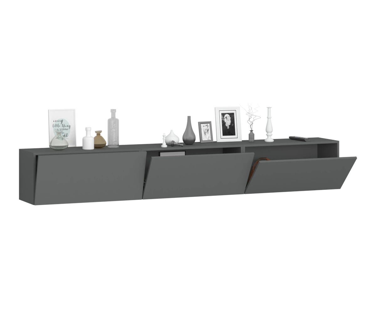 - Дополните подвесную ТВ-тумбу другими блоками "Аризоны": купите открытые полки, чтобы хранить там книги, сувениры или сервиз.