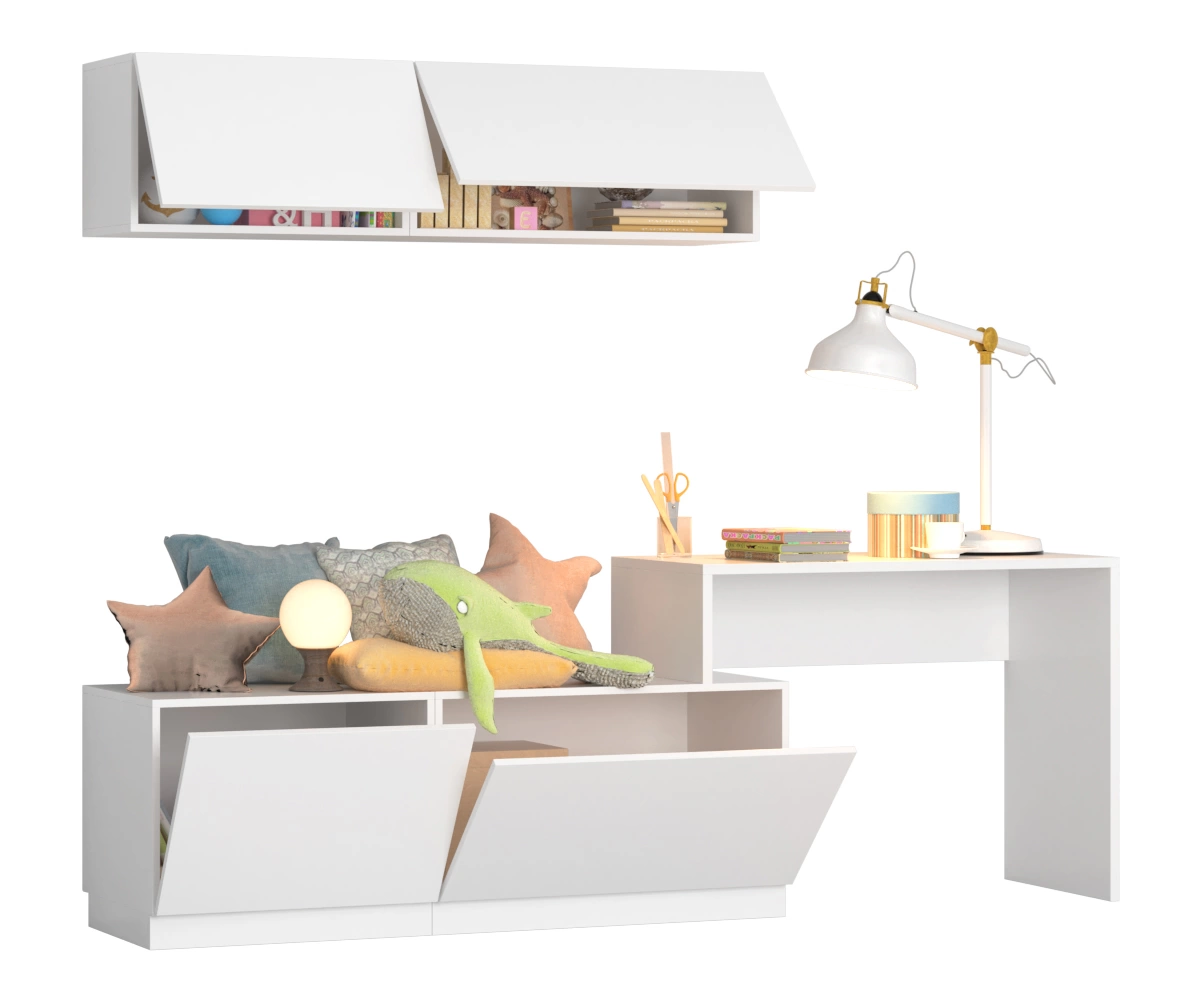 Инновационная детская-трансформер "Аризона"! В чём фишка? Уникальность этого детского гарнитура в том, что вы можете подбирать модули самостоятельно из серии гостиной "Аризона"! Вам нужна детская для одного или двух детей? Приставьте столы-консоли с обеих сторон и добавьте ещё модули! Воплотите свои фантазии в реальность вместе с нами и сконструируйте ТВ-тумбу, детский гарнитур, домашний офис и многое другое!