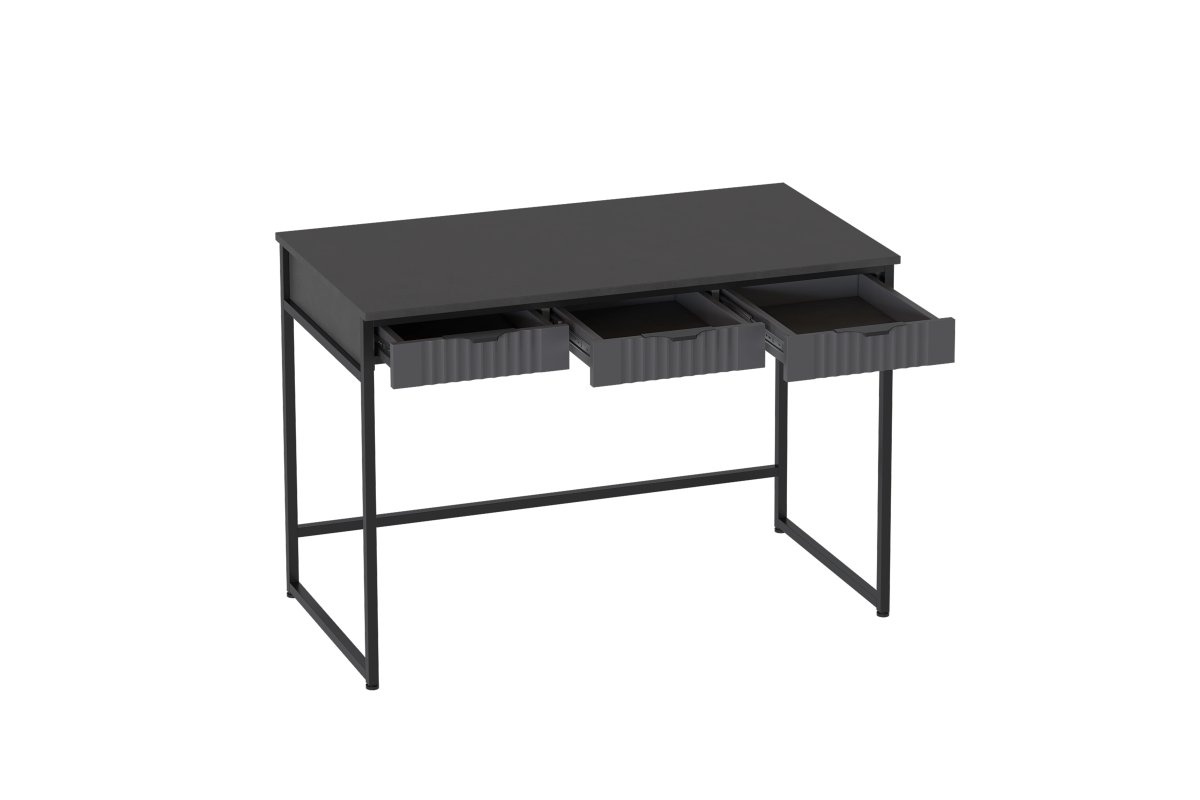 Письменный стол "Нора" на металлокаркасе состоит из трех выдвижных ящиков на шариковых направляющих, что позволяет удобно хранить вещи и поддерживать порядок в комнате. Он выполнен из безопасных, качественных материалов, что гарантирует долговечность и сохранение первоначального вида на протяжении долгого времени.