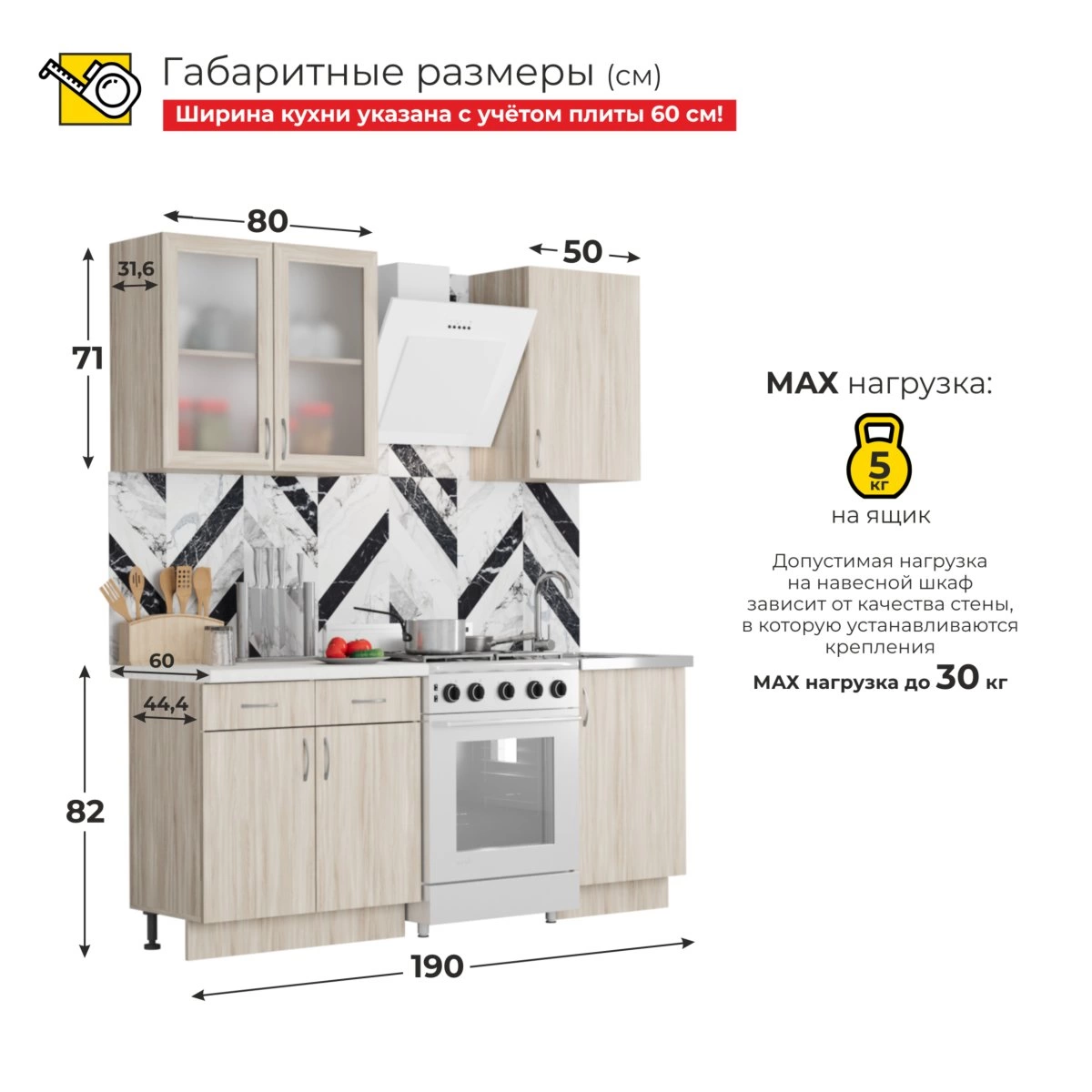 Глубина верхних модулей – 31,6 см