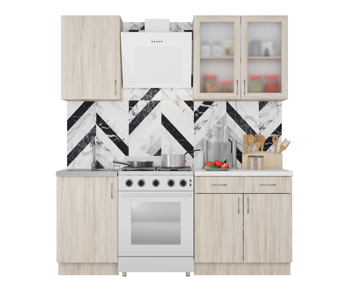 Модули данного кухонного гарнитура можно устанавливать под особенности Вашего помещения.
