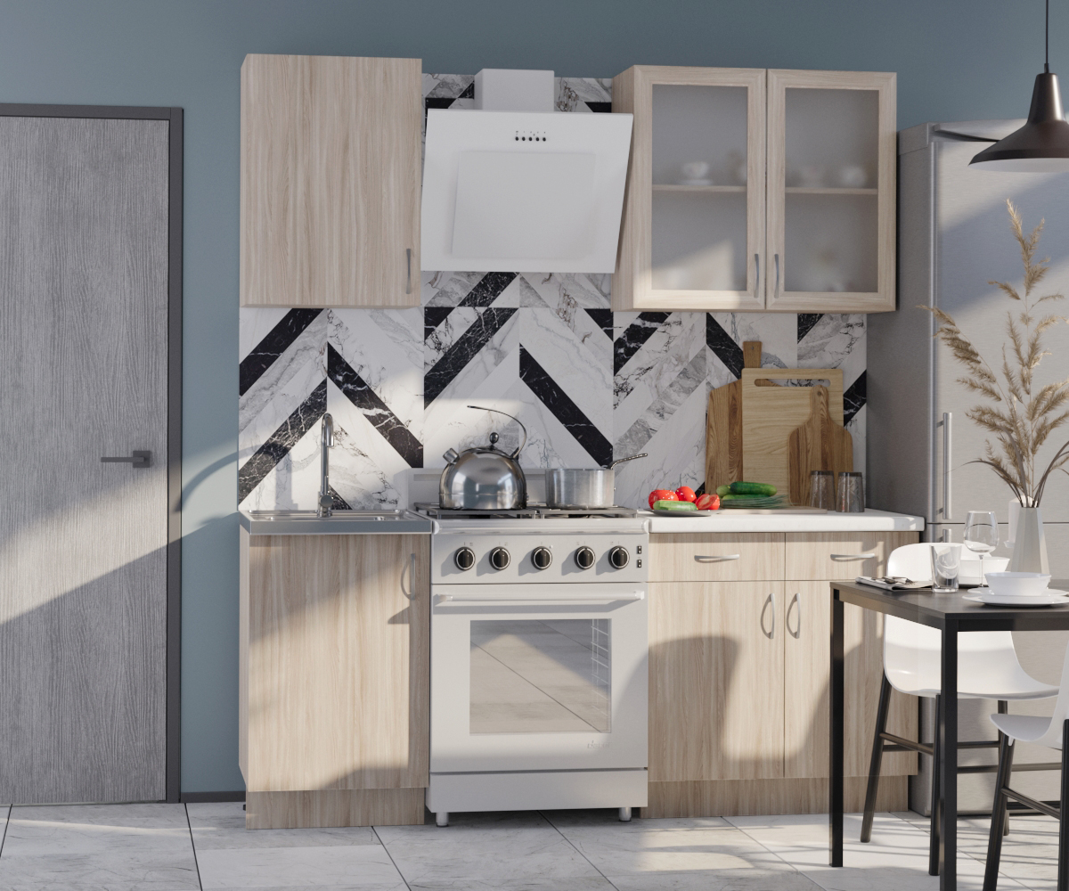 Кухня «Альфа» собственного производства “Балтика Мебель” отлично подойдёт как для квартиры, так и для загородного дома или дачи. Фасады из ЛДСП наиболее востребованный и популярный материал, который имеет недорогую стоимость, хорошо обрабатывается и при должном уходе прослужит Вам много лет. Так же, кухня изготовлена в нескольких размерах, за счёт чего Вы сможете выбрать тот вариант, который идеально подойдет под планировку Вашей квартиры.