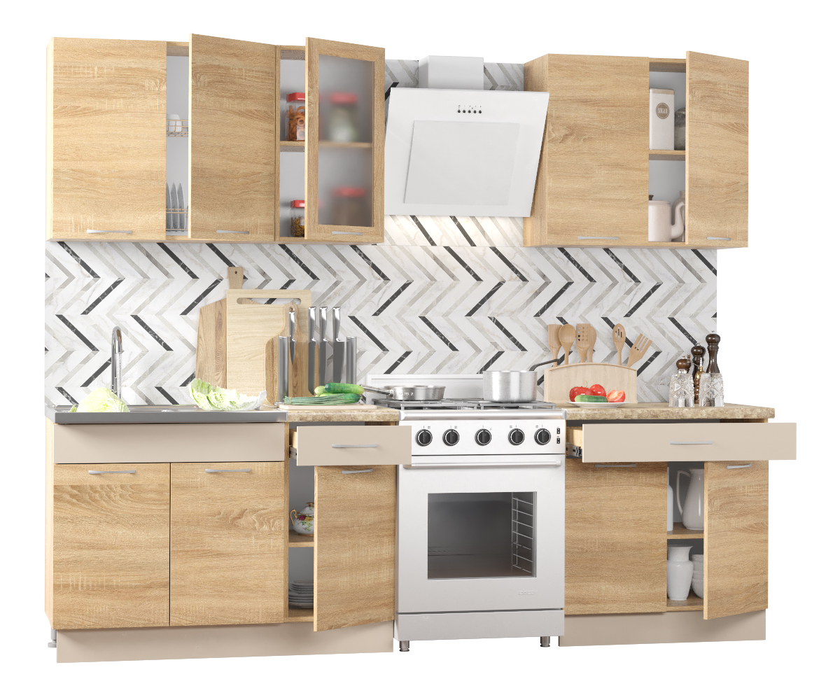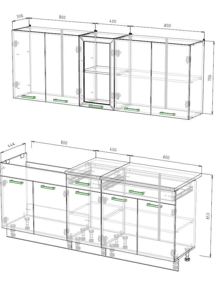 Модули данного кухонного гарнитура можно устанавливать под особенности Вашего помещения.