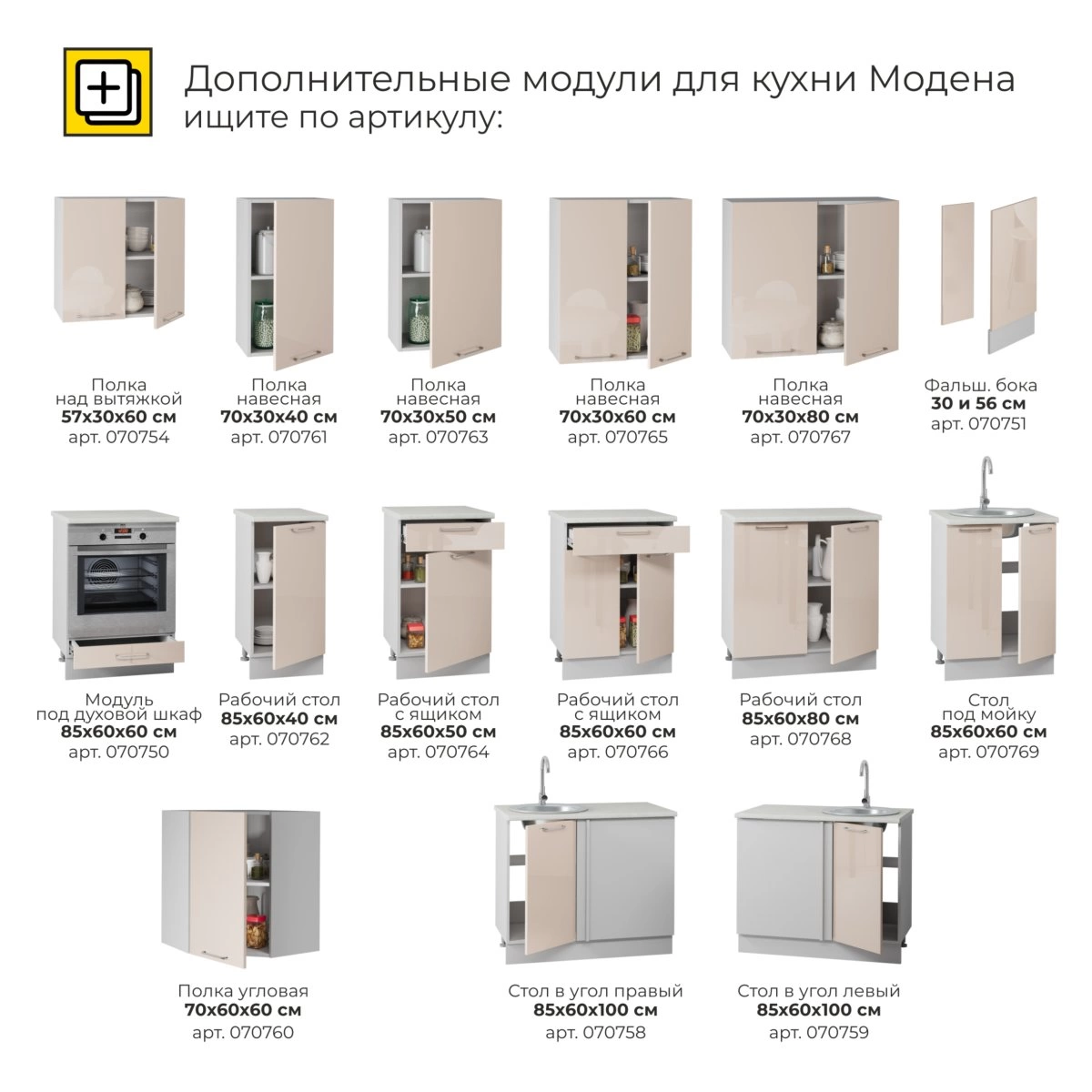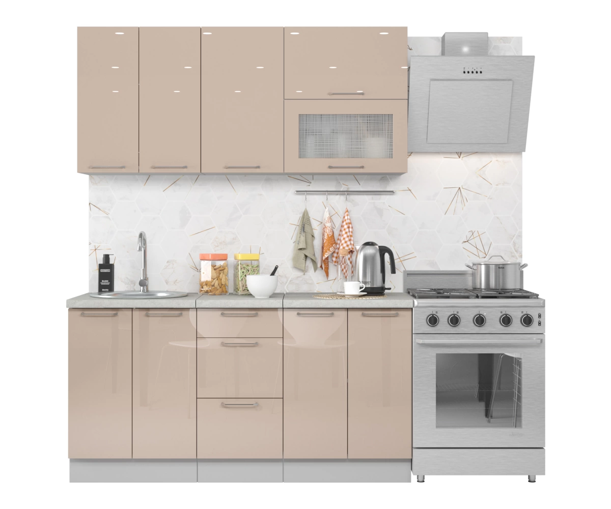 Модули данного кухонного гарнитура можно устанавливать под особенности Вашего помещения.