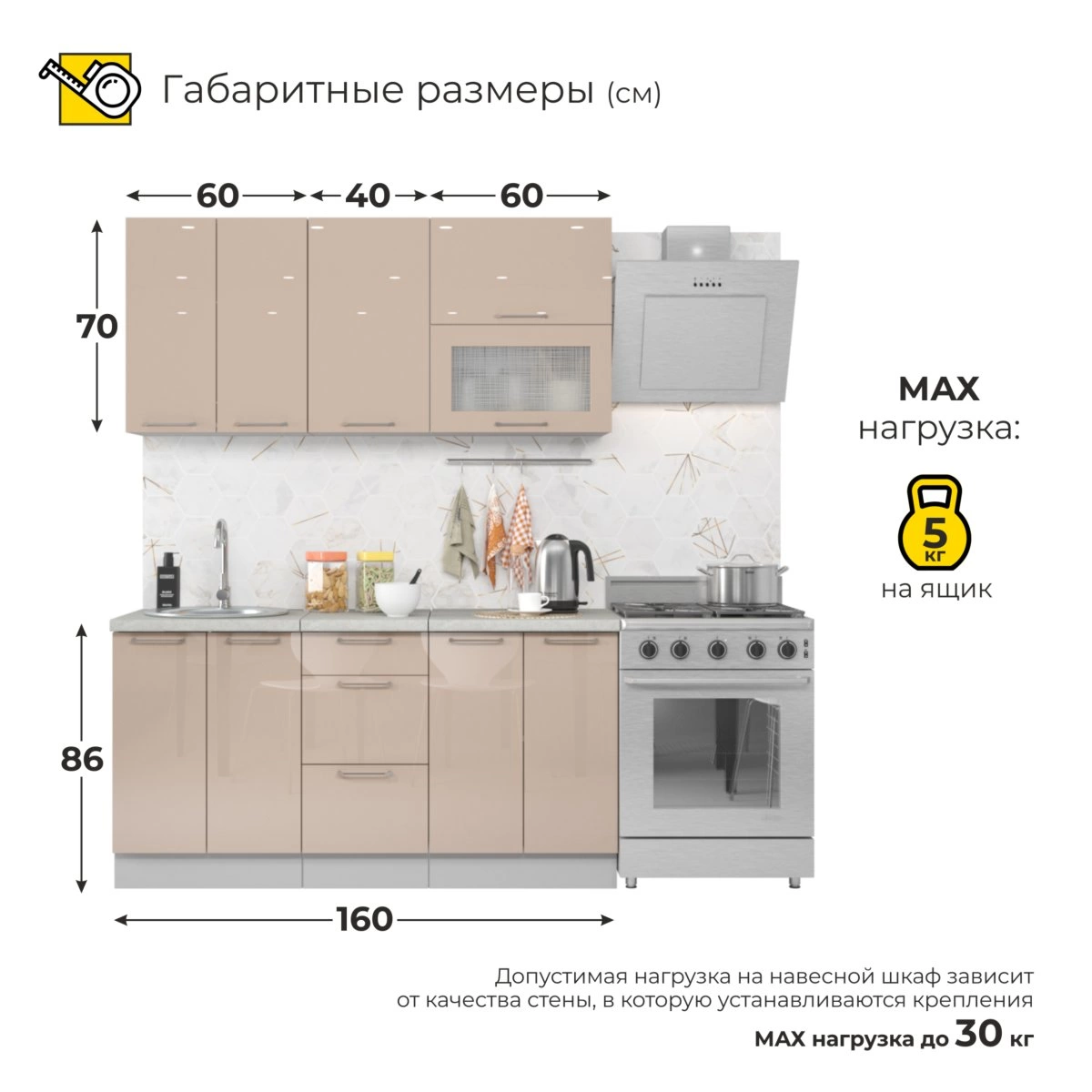 Глубина верхних модулей – 30 см