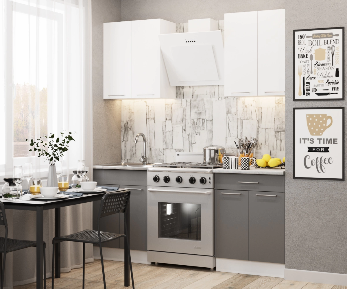 Верхние и нижние модули, ДВП белое везде, петли Boyard без доводчика, столешница 28 мм 187 Венеция, шариковые направляющие ящиков, ручка № В 45 Х/М 128