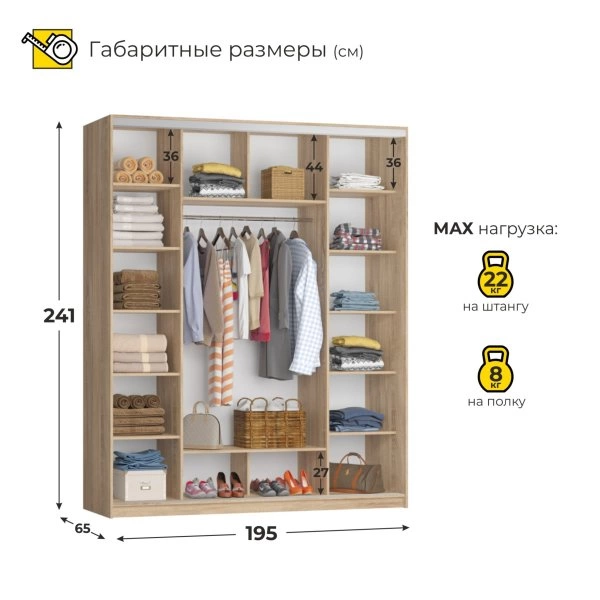 *набор Шкаф-Купе Персей, 2411*647*1948, двери: ЛДСП/ЛДСП/ЛДСП