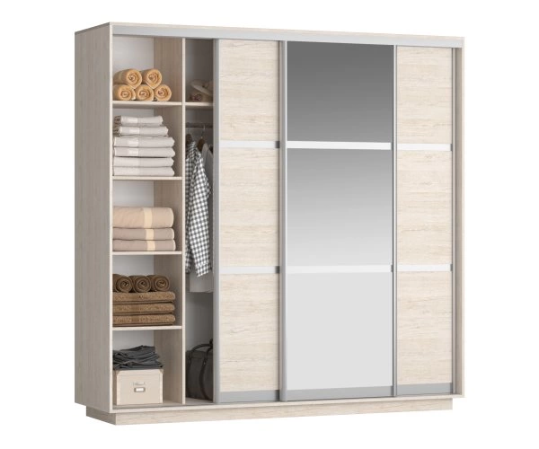Шкаф Элана, платяной с полками, с зеркалом, створки: 3, 2185*645*1430