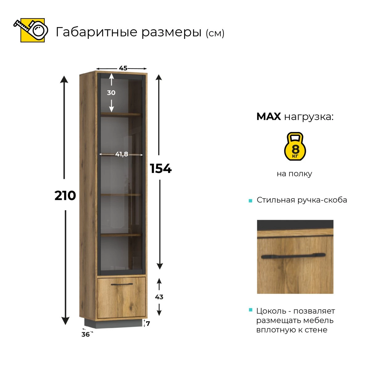 Этот шкаф-пенал станет отличным решением для хранения книг, журналов, декоративных элементов и других мелочей. Его лаконичный и стильный вид украсит вашу гостиную, спальню или кабинет. Защищайте и демонстрируйте ваши любимые книги и предметы с помощью пенала Лофт книжного со стеклом.