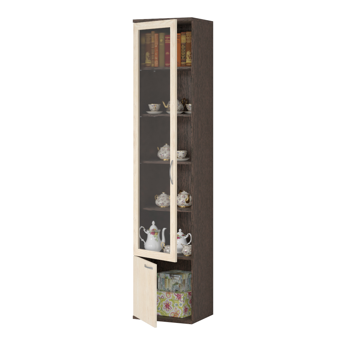 Пенал Домино 0 ящ 2 дв, книжный, со стеклом, 2100*380*450