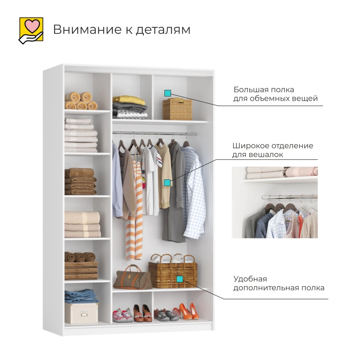Шкаф-купе Персей – это превосходное решение для тех, кто ценит качество и функциональность в каждом элементе вашего дома. Он поможет поддерживать порядок и организовать пространство, сделав ваше жилище более комфортным и уютным. Выберите данный шкаф и наслаждайтесь идеальной организацией вашего хранения.