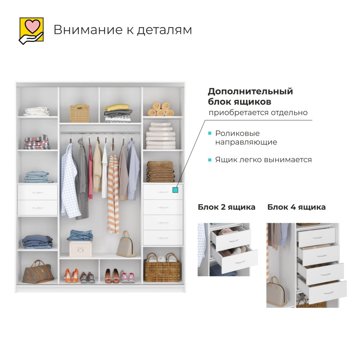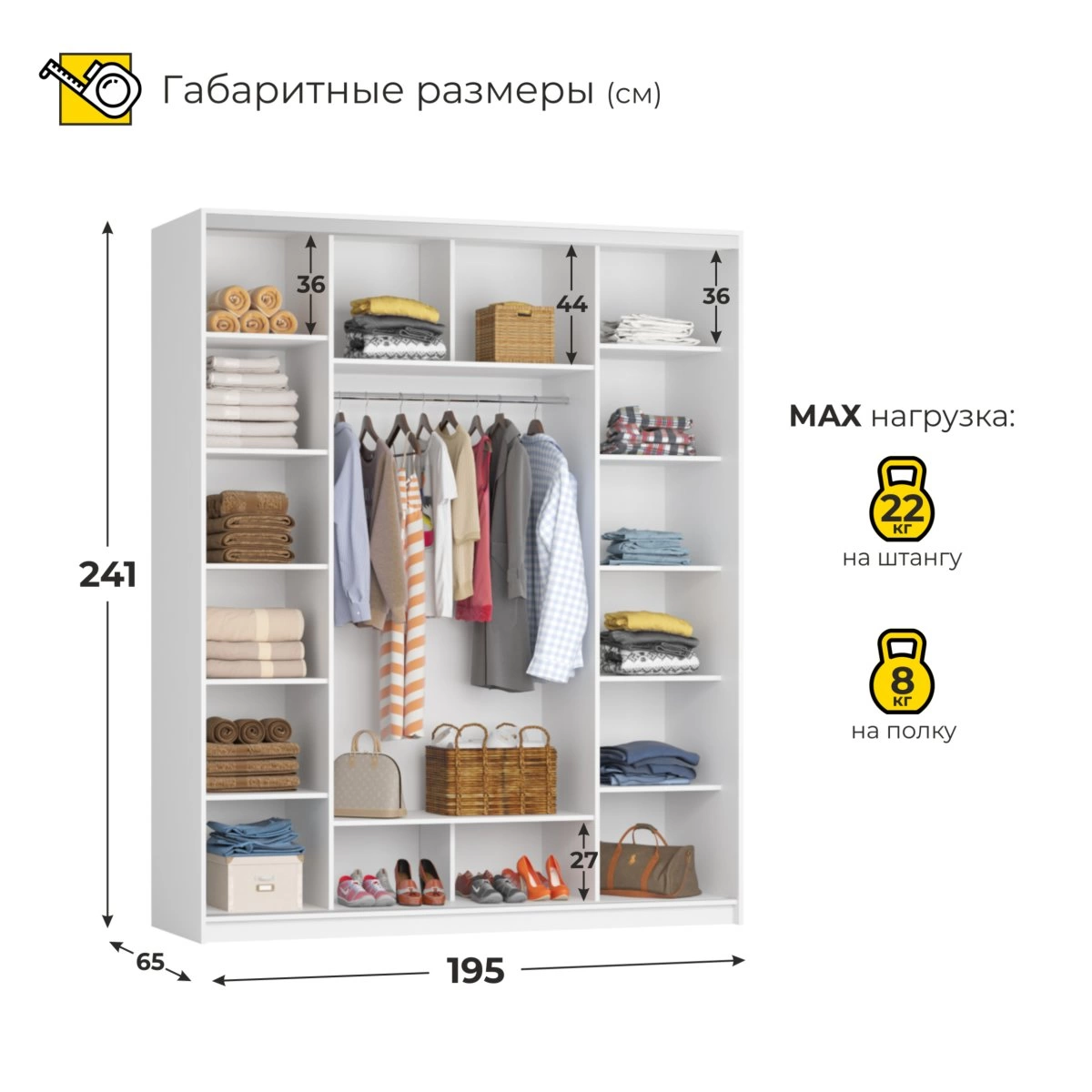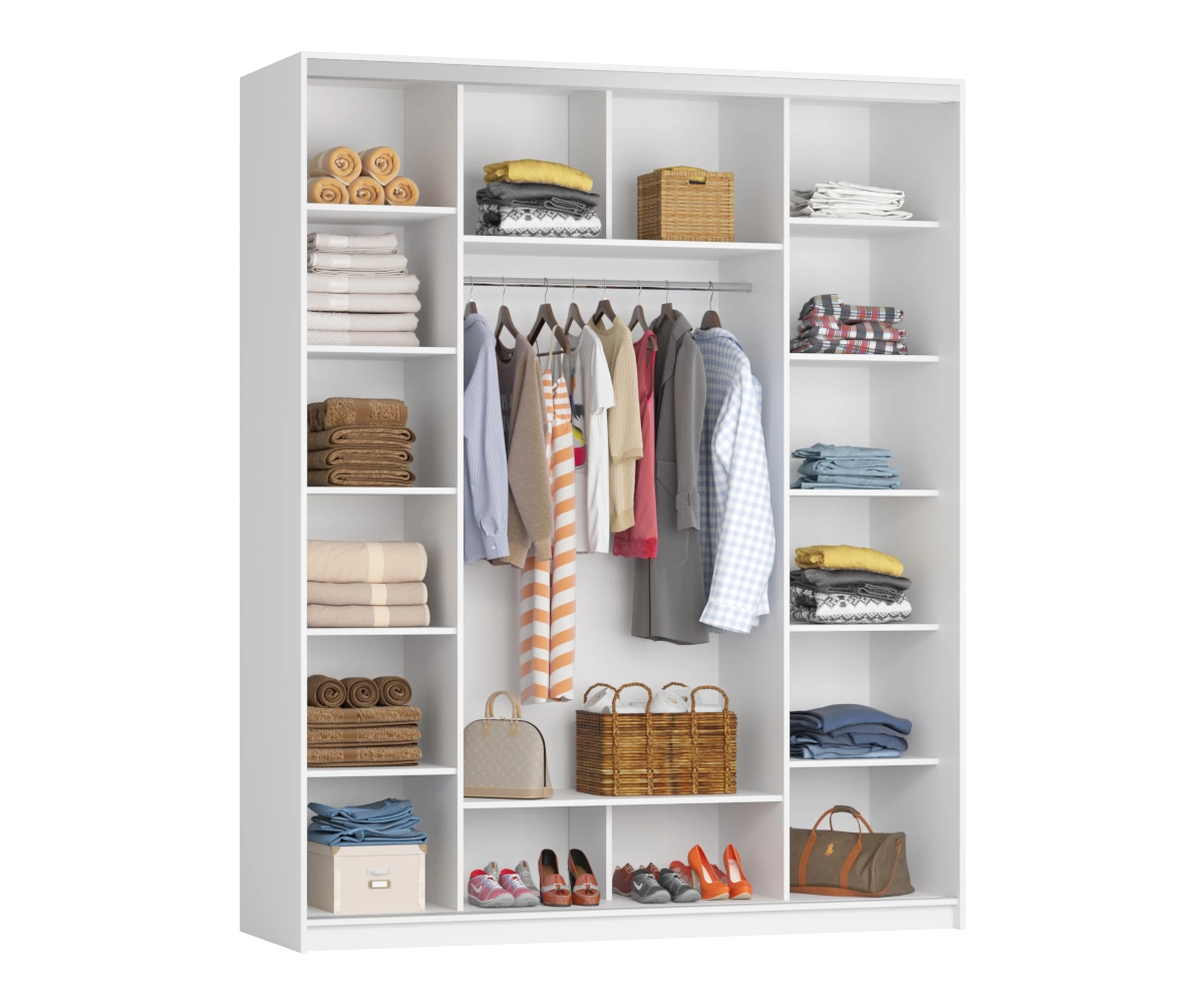 Внутреннее пространство шкафа достаточно вместительное и продуманное. Вам не придется беспокоиться об организованности ваших вещей, ведь наличие полок и вешалок позволяет разделить одежду по категориям. Это существенно упрощает процесс выбора наряда и помогает поддерживать порядок.