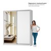 Основная особенность этой модели – большое зеркало, которое не только визуально увеличивает пространство, но и позволяет с удобством оценить свой внешний вид. Шкаф-купе подходит для спальни, гостиной или прихожей, становясь универсальным решением для хранения вещей.