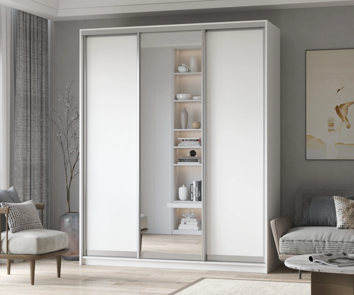 Конструкция изделия обеспечивает надежность и долговечность. Шкаф-купе легко открывается и закрывается, что делает его использование комфортным. Кроме того, слежение за чистотой и уход за мебелью не требует много усилий, что является важным преимуществом в современном ритме жизни.