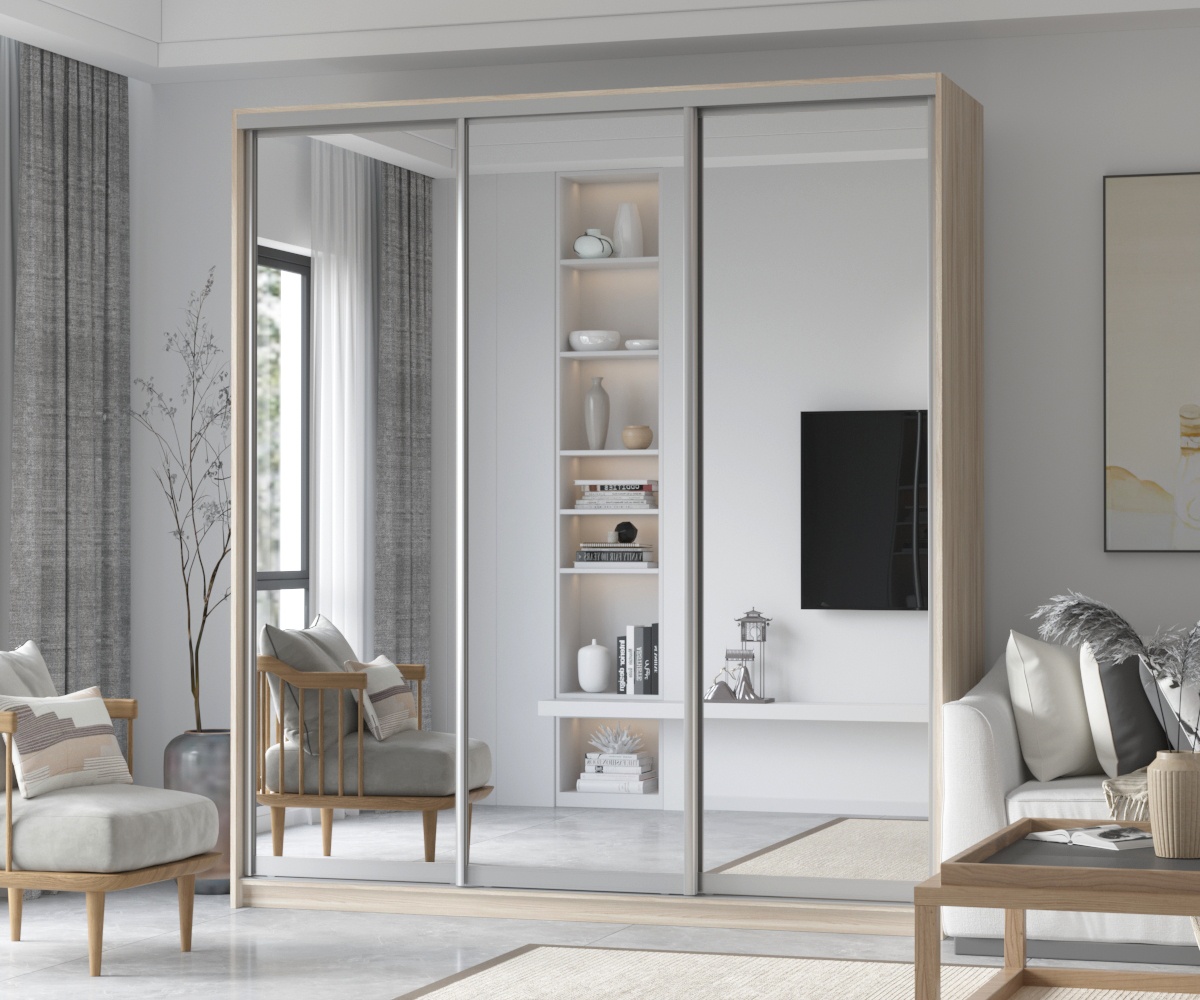 Шкаф-купе Персей с зеркалами - это стильное и функциональное решение для вашей спальни или прихожей. Этот мебельный предмет сочетает в себе элегантный дизайн и практичность, обеспечивая достаточно пространства для хранения одежды, обуви и аксессуаров. Его стильные зеркала не только декоративно оформляют шкаф, но и визуально увеличивают пространство, что особенно актуально для небольших помещений.