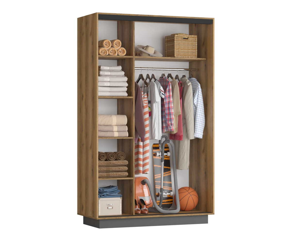 Шкаф-купе Лофт 2 создан с учетом всех потребностей современного пользователя. Его гармоничный дизайн в стиле лофт сочетает в себе металлические элементы и дерево, что привносит уют и комфорт в любой интерьер. Просторные полки и отделения позволяют хранить одежду, белье, аксессуары и другие предметы максимально упорядоченно и доступно.