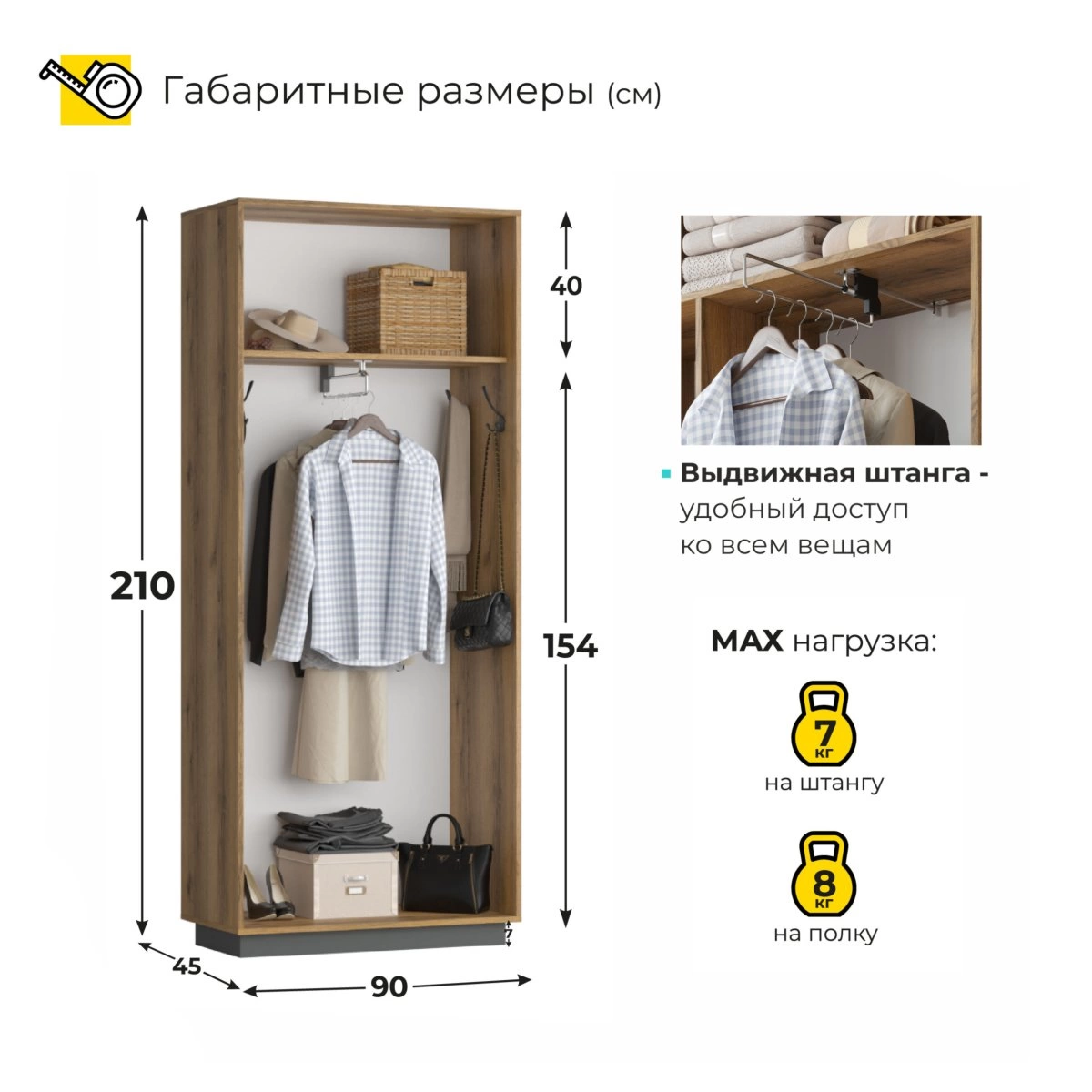 - Вместительный и функциональный: для удобного размещения одежды и аксессуаров.