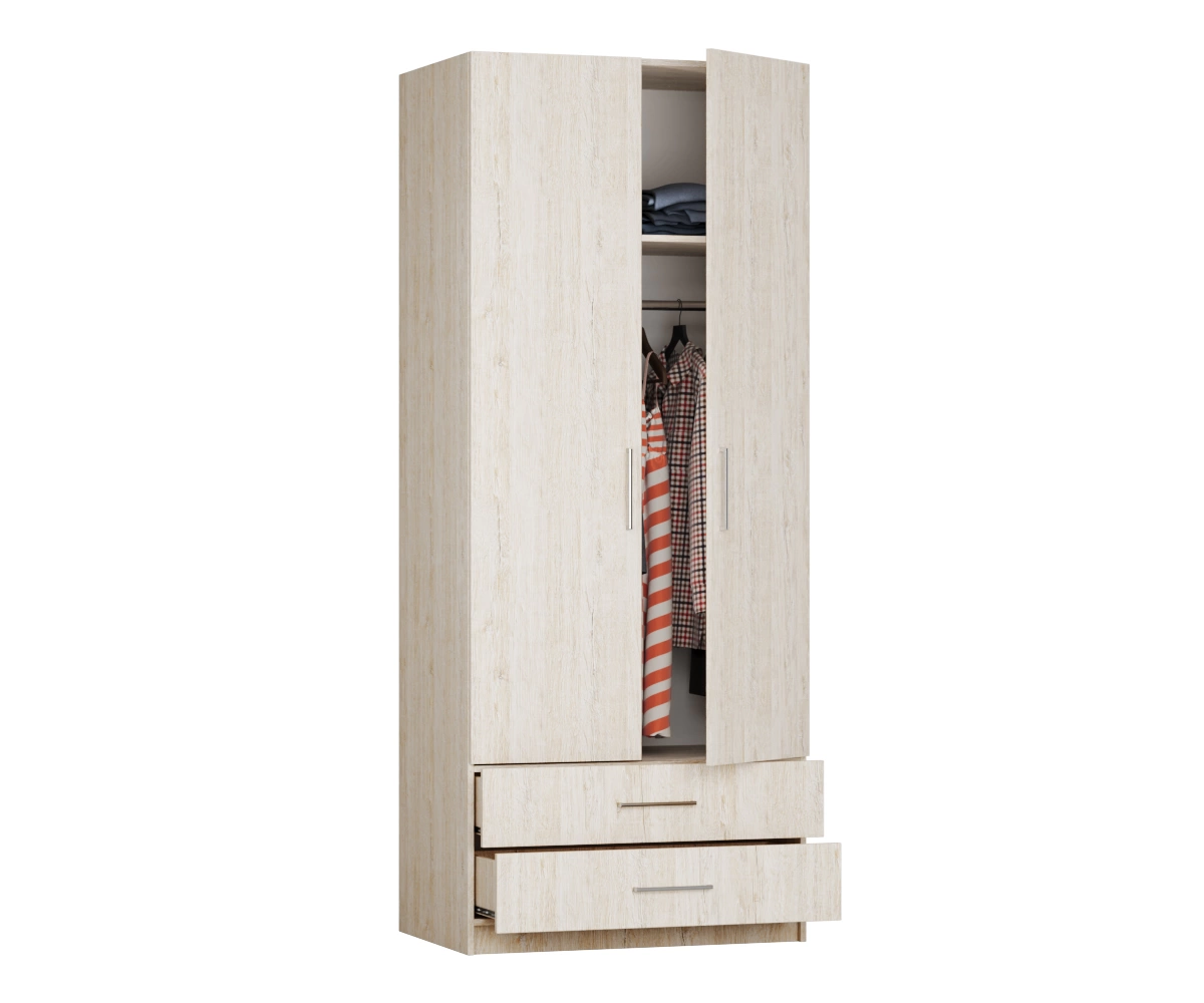Основной конструктивной особенностью данного шкафа является распашная система дверей, что обеспечивает легкий доступ к содержащимся внутри вещам. Вы сможете с легкостью хранить верхнюю одежду, платья или комплекты постельного белья. Содержимое шкафа всегда будет под рукой и при этом аккуратно организовано.