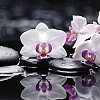 белая орхидея на черных камнях
