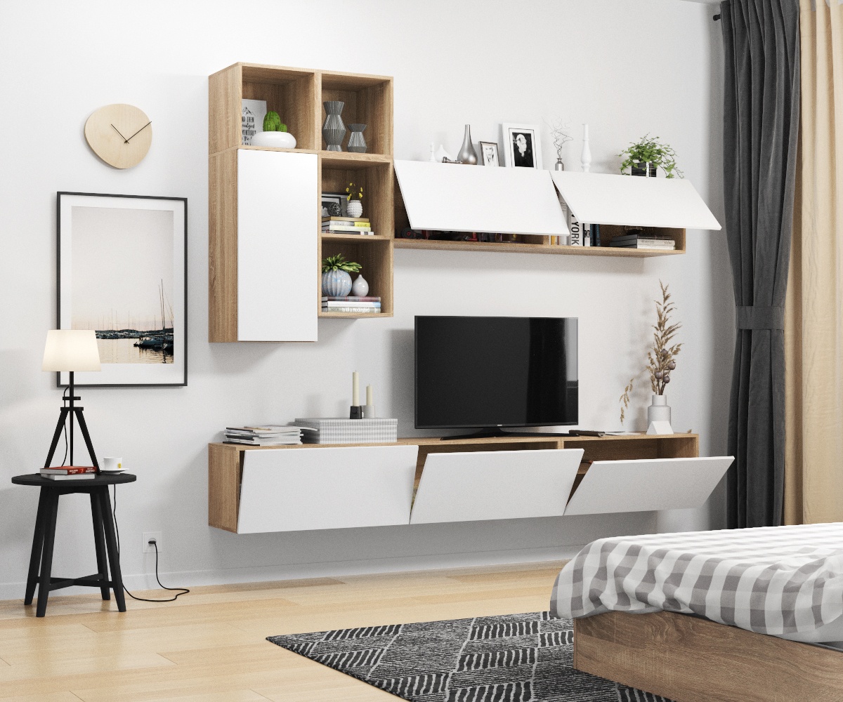 - Подойдёт для любой комнаты: подвесные тумбы можно использовать как полки для детской, модульную ТВ-тумбу поставьте в гостиную или спальню!