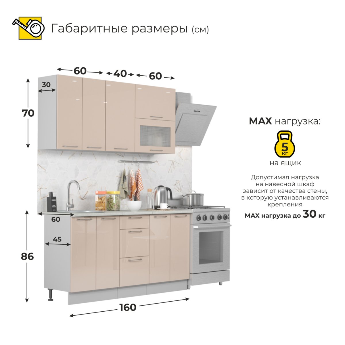 Глубина верхних модулей – 30 см