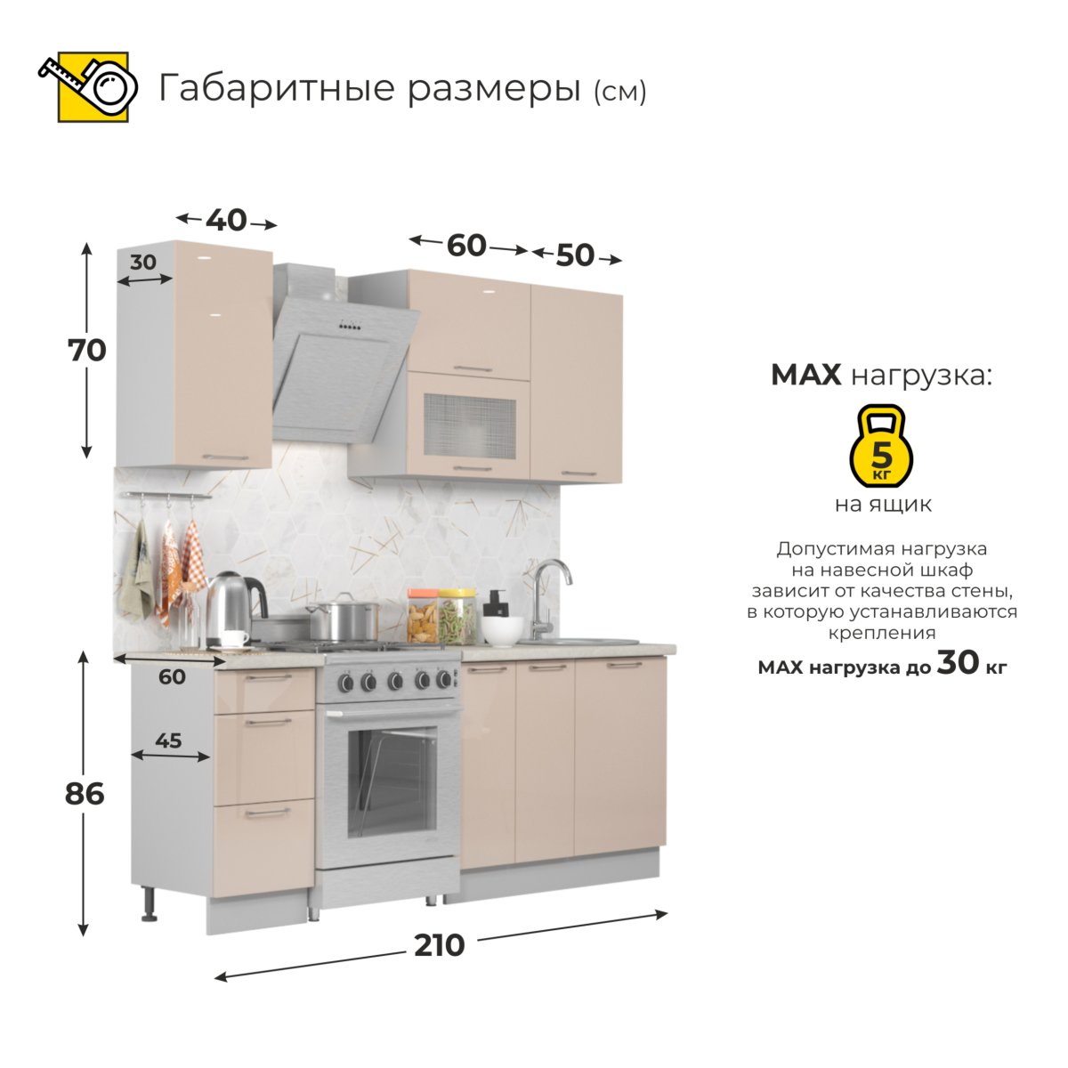 Глубина верхних модулей – 30 см