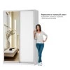 Основная особенность этой модели – большое зеркало, которое не только визуально увеличивает пространство, но и позволяет с удобством оценить свой внешний вид. Шкаф-купе подходит для спальни, гостиной или прихожей, становясь универсальным решением для хранения вещей.