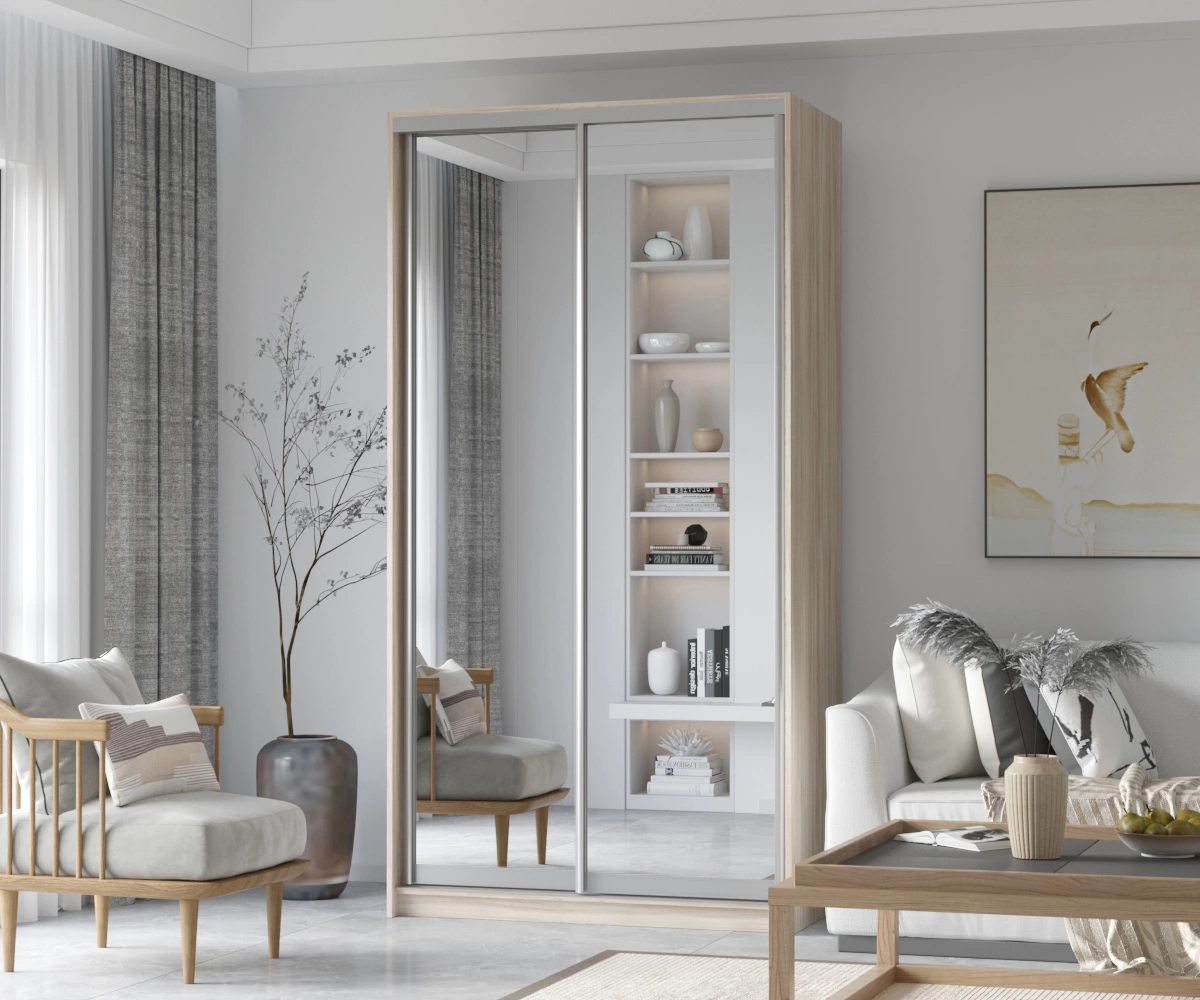 Шкаф-купе Персей с зеркалами - это стильное и функциональное решение для вашей спальни или прихожей. Этот мебельный предмет сочетает в себе элегантный дизайн и практичность, обеспечивая достаточно пространства для хранения одежды, обуви и аксессуаров. Его стильные зеркала не только декоративно оформляют шкаф, но и визуально увеличивают пространство, что особенно актуально для небольших помещений.