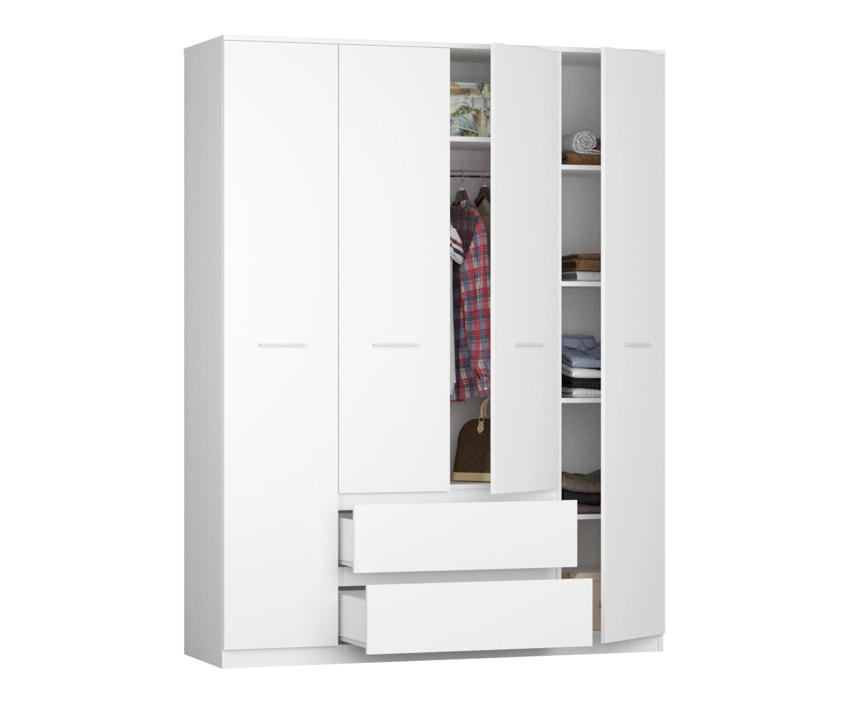 4-х дверный шкаф "Идея" - лучшая система хранения для вашего интерьера. Если вам всегда хотелось осовременить свою квартиру, то самое время купить универсальный шкаф "Идея"! Шкаф для одежды с ящиками состоит из 6 блоков: 2 отсека с полками, гардеробное отделение посередине, 2 ящика снизу. Установите шкаф в прихожую, спальню, гостиную. Привезите шкаф в загородный дом или дачу. В этом шкафу поместится гардероб всей вашей семьи, а в ящиках можно хранить сезонную обувь! Полки глубокие и широкие, одежды поместится много, можно ставить комбинированный шкаф в спальню. В среднем отсеке можно хранить верхнюю одежду, платья, костюмы. Шкаф с 4 дверьми от производителя изготавливается в качественном ЛДСП и проверяется 3 раза перед тем, как к вам приехать! Также белый шкаф подойдёт и для коммерческих компаний: можно поставить шкаф в аптеку, медицинский центр, в офис.