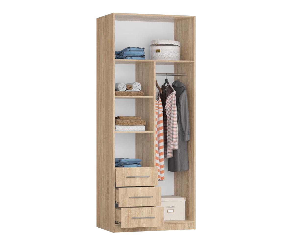 Шкаф Ника 3 ящ слева, платяной с полками, створки: 2, 2219*505*800