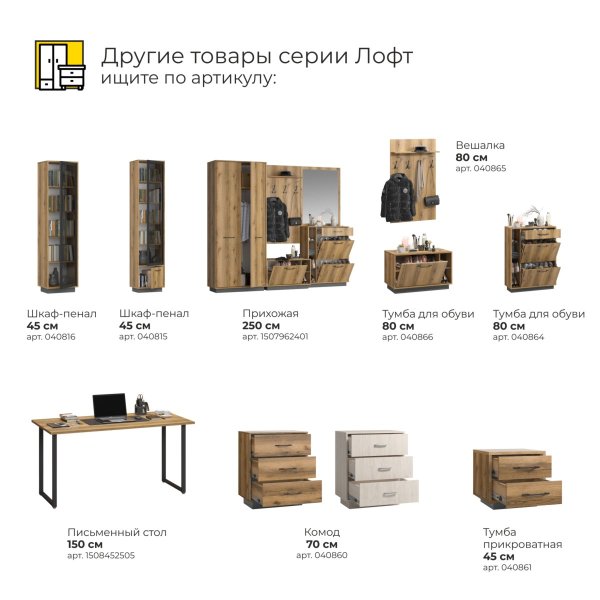 Пенал Лофт с ящиком, книжный, 2100*356*450